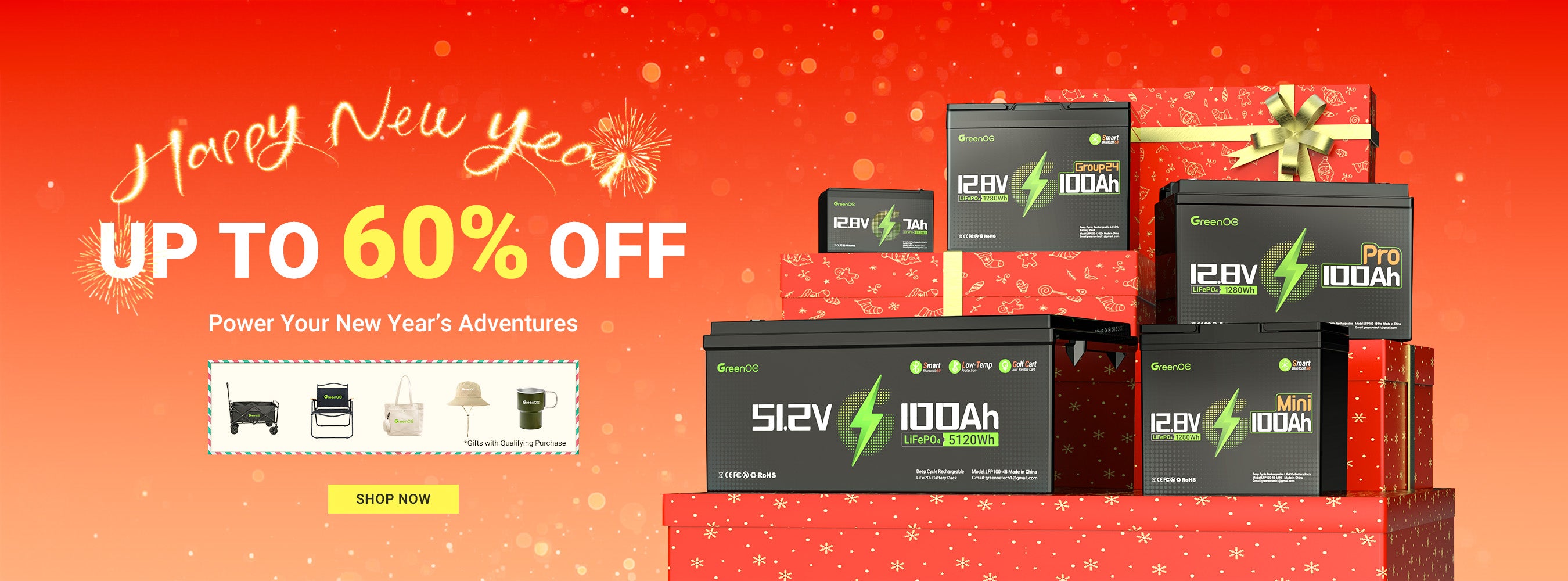 Start the year strong with GreenOE batteries & unlock adventure-ready camping gear – hit higher tiers, get more free gifts.